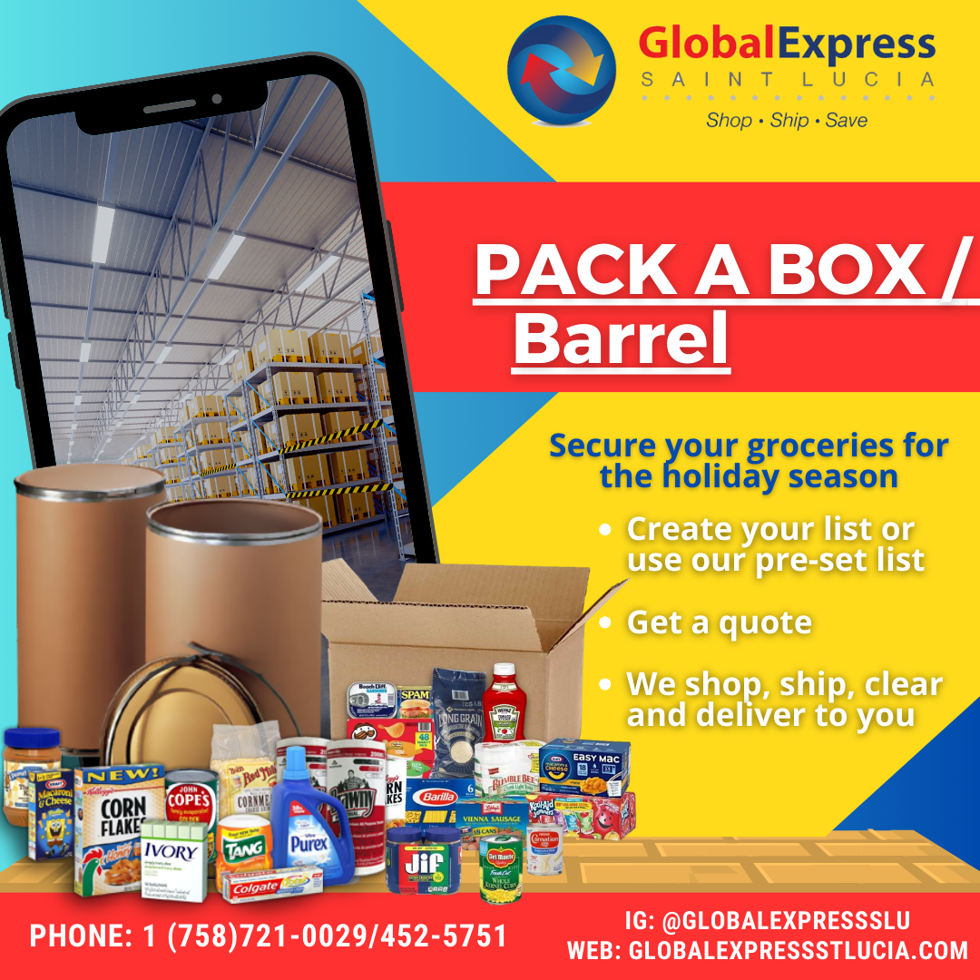 If you would like to select your own goods and create a customized order, create your list and email it to packabox@globalexpressstlucia.com